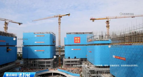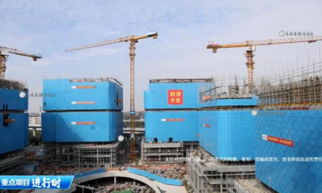 位于阜阳高铁西站旁的 阜阳智谷产业园项目 近日取得新进展 作为省市重点工程 项目B区 ——金融中心地上主体结构施工 已完